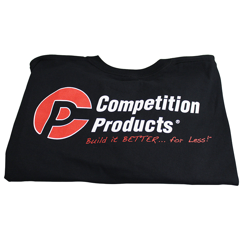 Competition Products Logo T-Shirt, Black These T-shirts feature multi-colored silk screen with a large Competition Products logo on the back of the shirt, and a small logo on the front. 6oz. 100% cotton.