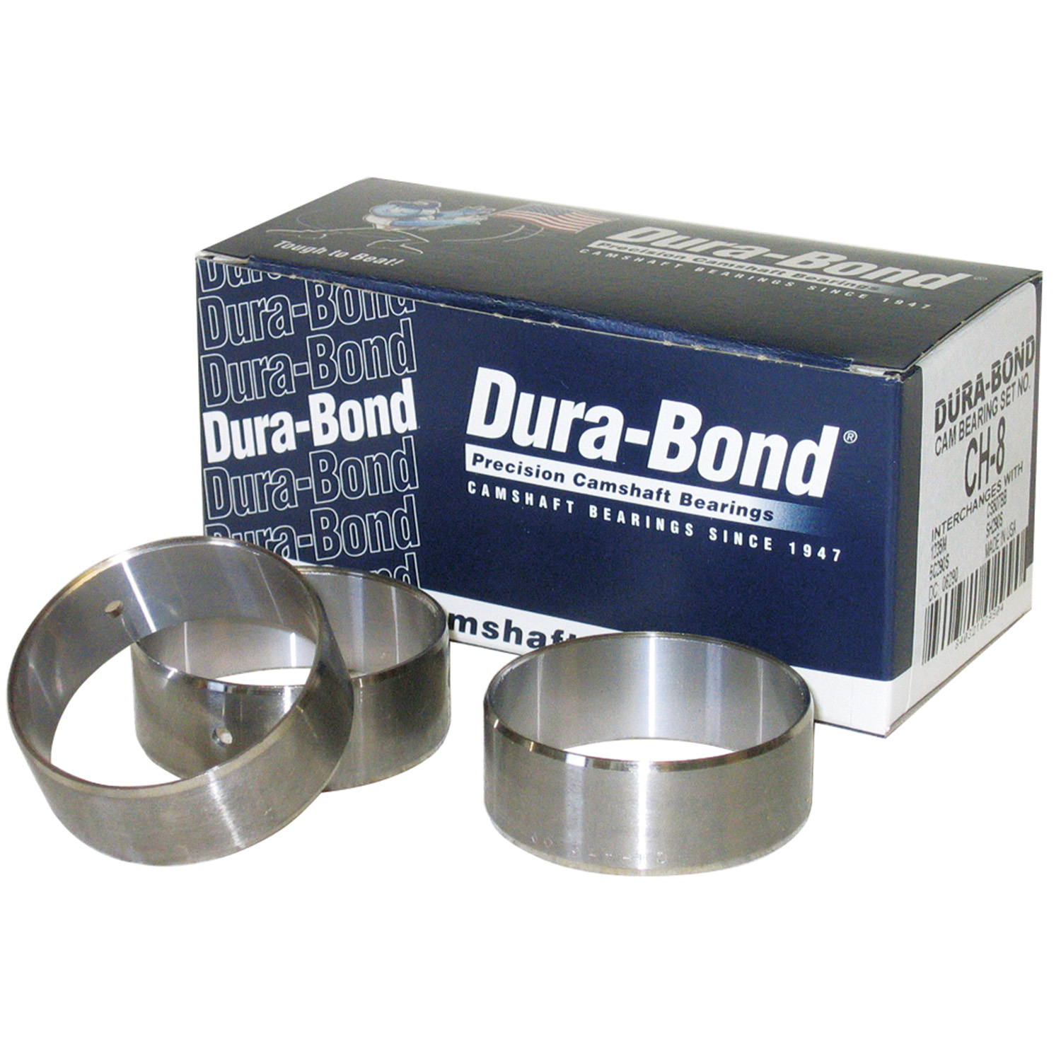 Dura-Bond BiMetal Cam Bearings Dura-Bond bimetal bearings are constructed from a seamless steel tube with a thin layer of lead based babbitt material. Lead based babbitt provides ideal properties for nearly all engine applications. Babbitt's superior embedability, conformability, and anti-seizure characteristics have proven to reduce engine failures that harder bearing materials can cause.