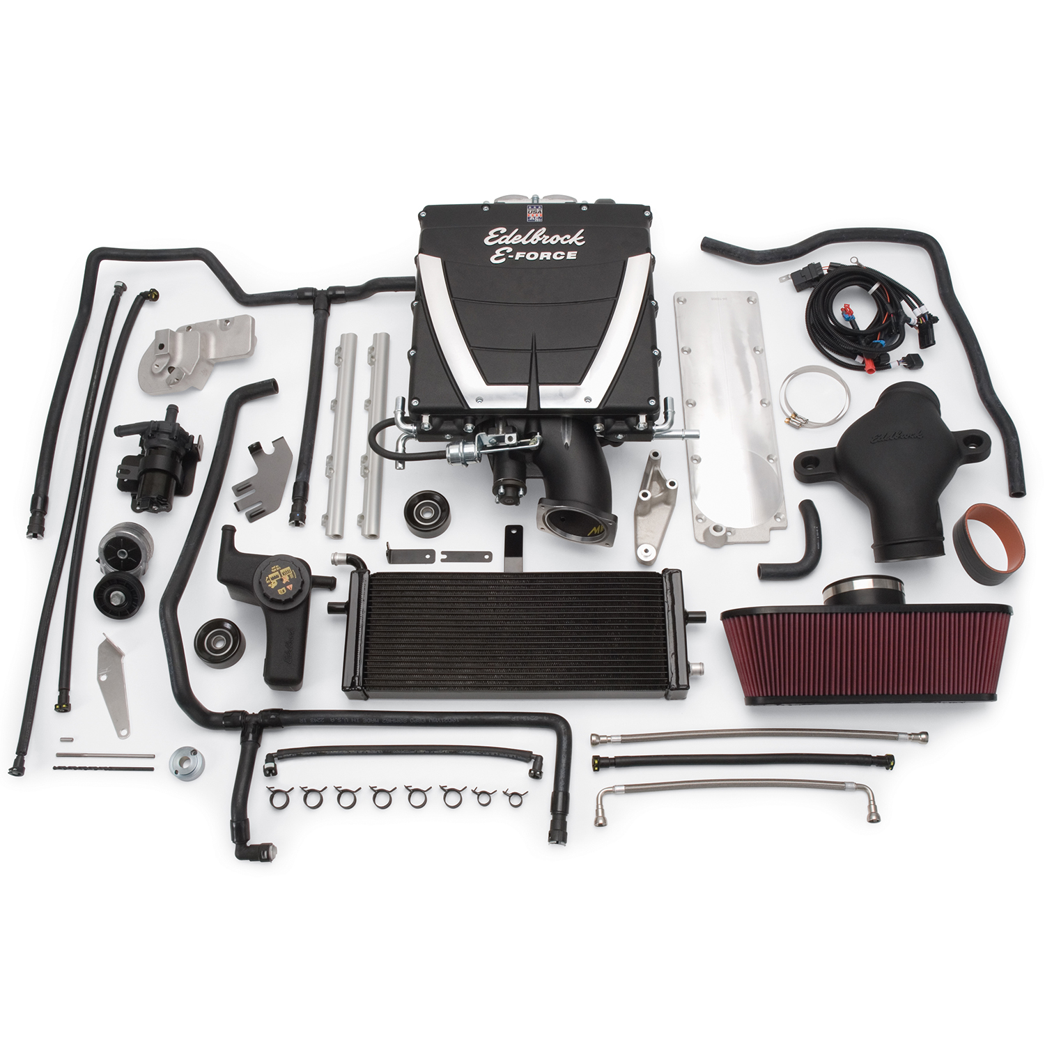 Edelbrock E-Force Supercharger systems deliver excellent horsepower and torque in a complete, street-legal kit that fits under the factory hood. The core of each system is the Eaton Gen VI 2300 TVS Supercharger rotating assembly. Eaton's assembly features a four lobe design with 160° of twist for maximum flow, minimum temperature rise and quiet operation for excellent drivability.
