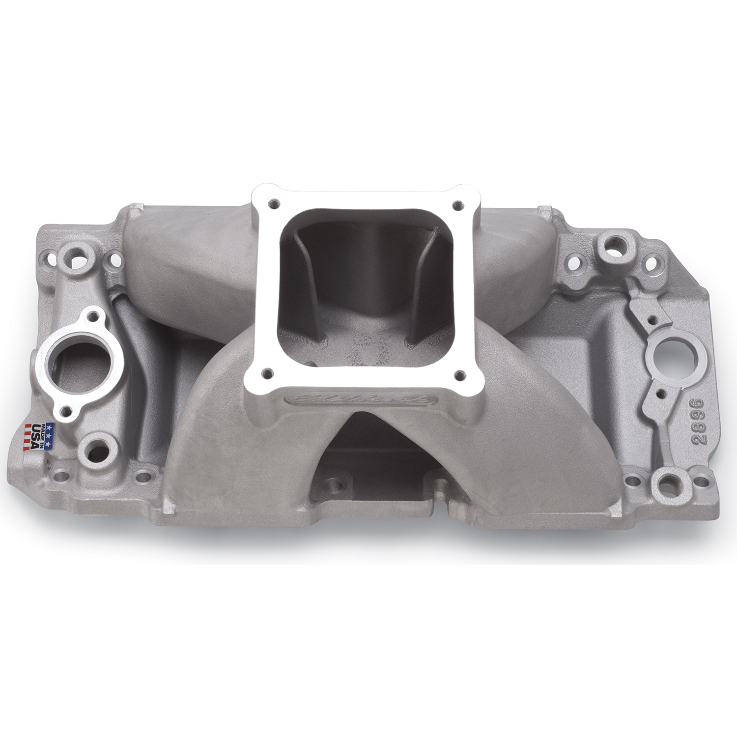Part Type: Intake Manifold Application: Chevrolet Big Block, 9.800" Deck Intake Manifold Style: Single Plane Engine Block Style: OE Carburetor Quantity: 1 Carburetor Mounting Style: 4bbl. Square Bore, 4500 RPM Range: 3500-8000 EGR Compatible: No Carburetor Pad Height: 7.560" Intake Manifold Material: Aluminum Intake Manifold Finish: Natural Manufacturer: Edelbrock Manufacturer's Part Number: 2896 Weight: 18.0 lbs. Warranty: 1 Year Warranty Quantity: Sold as Each