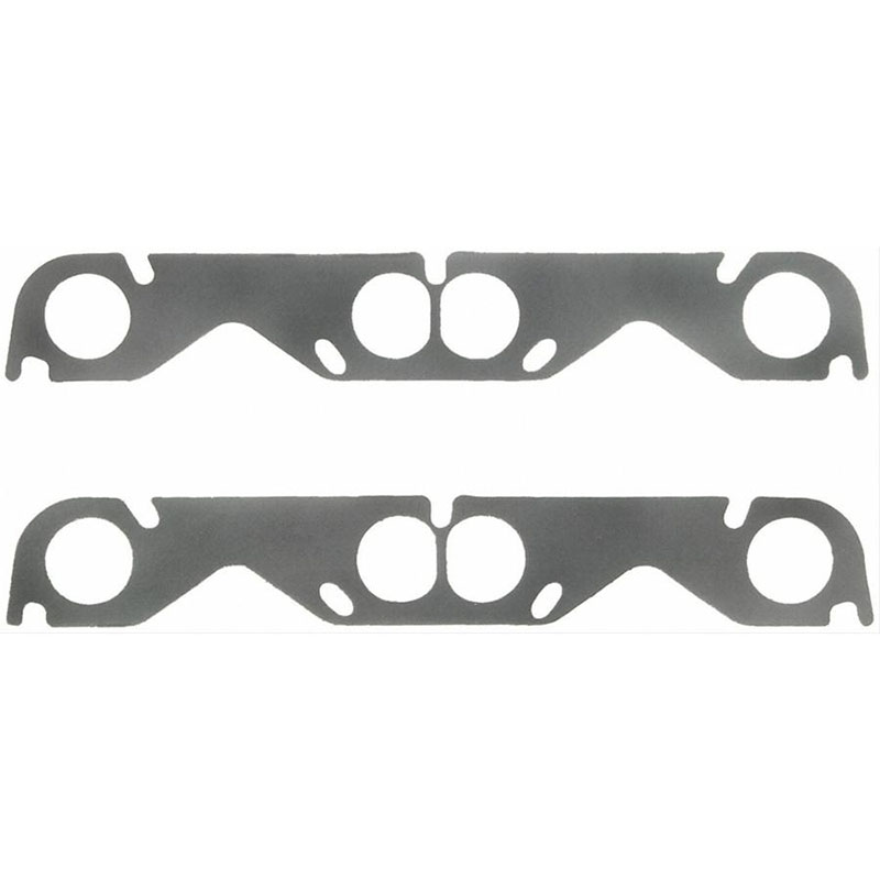 Fel-Pro Header Gaskets Fel-Pro Performance exhaust header gaskets consist of a high density fiber facing material attached to both sides of a perforated steel core. This technology resists blowouts and burnouts from high temperature exhaust. Far superior to paper header gaskets. This design will also seal slightly warped surfaces.