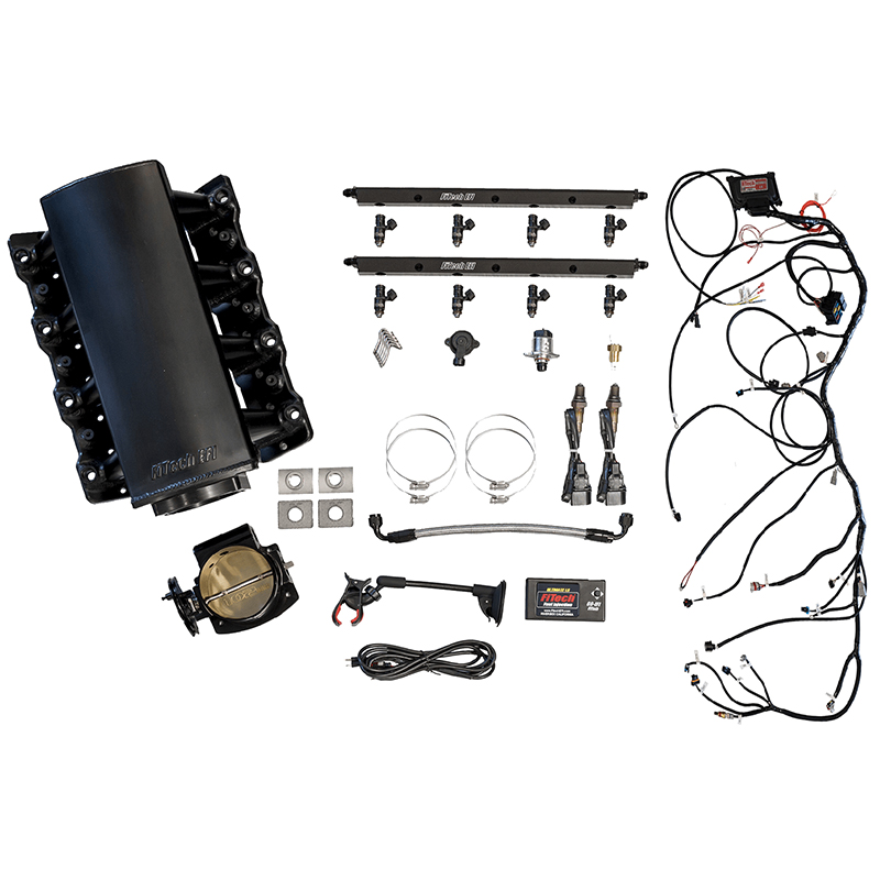 FiTech Ultimate LS Induction System Complete Self-Tuning Induction System for LS engines designed for the do-it-yourself Hot Rodder, to the professional EFI tuner! This system is ready to go with everything needed to complete the induction system of your LS engine and get you on the road easily and faster than any system on the market today. Forget sourcing mismatched parts and cutting and splicing old harnesses and re-flashed ECU's. FiTech's Ultimate EFI is a complete kit. Suitable for that junk yard 5.3L to a stroker 427!
