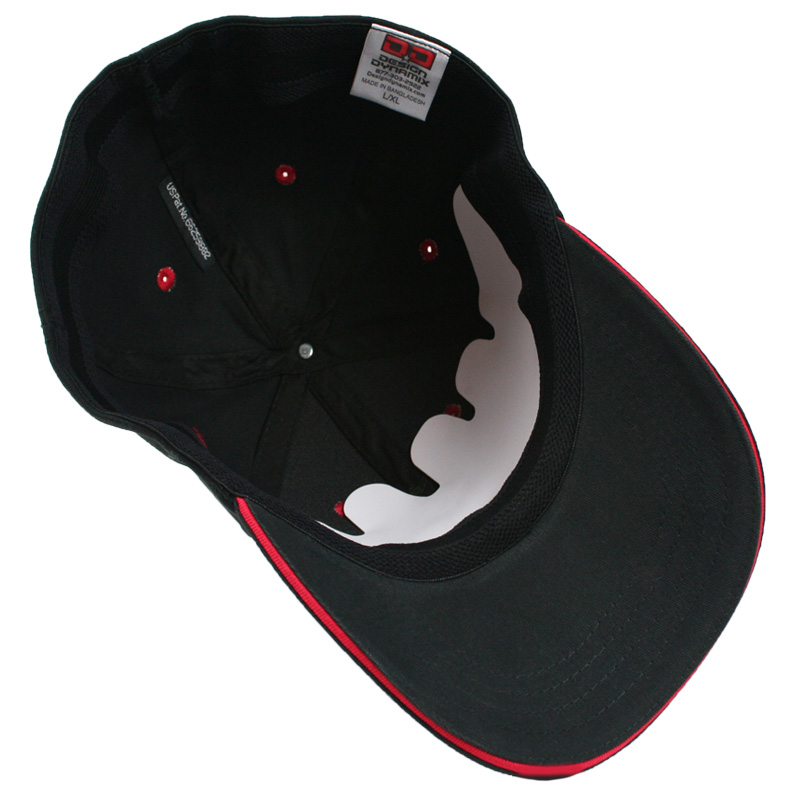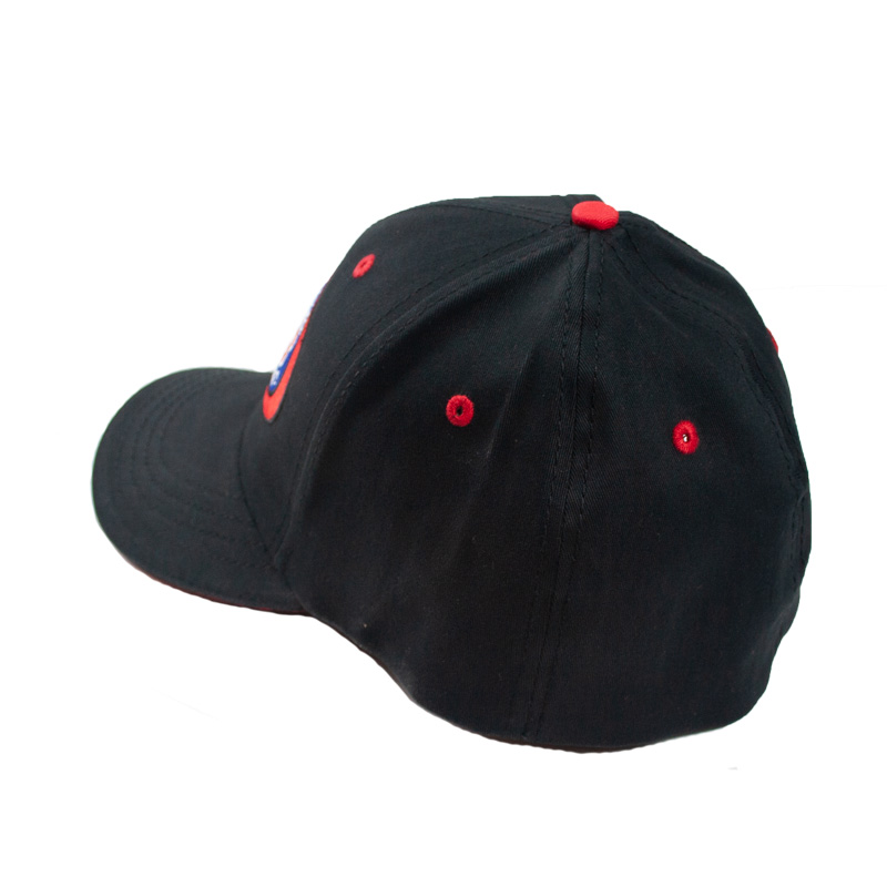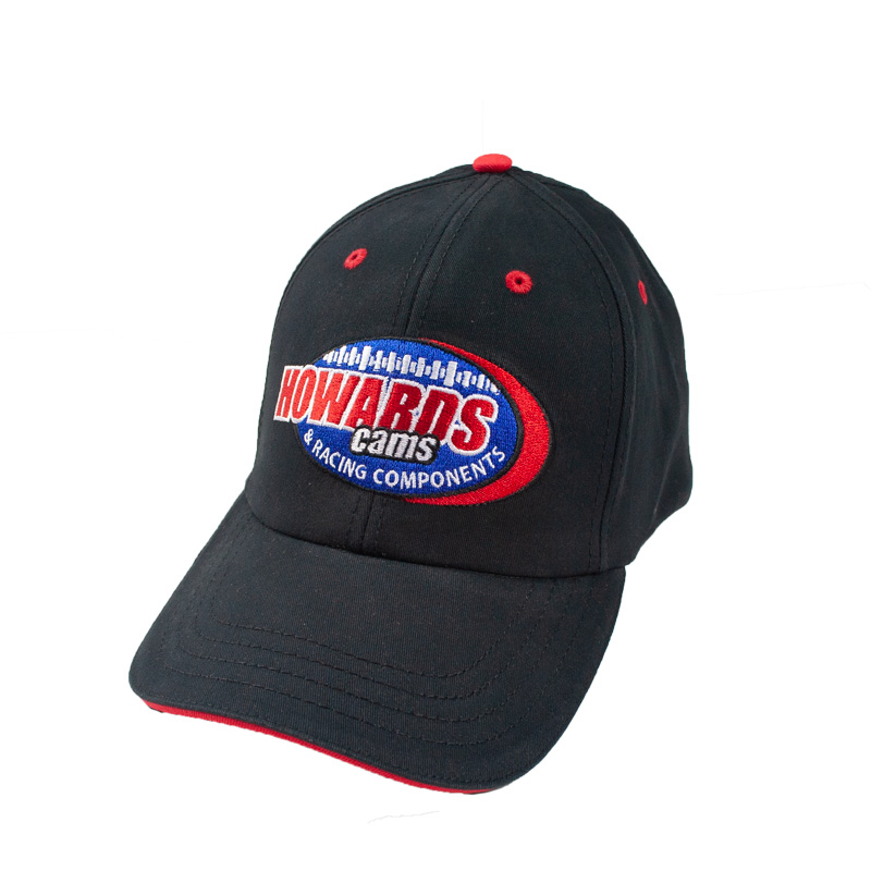 Comfortable Stretch-Fit design. Black with red accents. Embroidered with the Howards Cams logo.