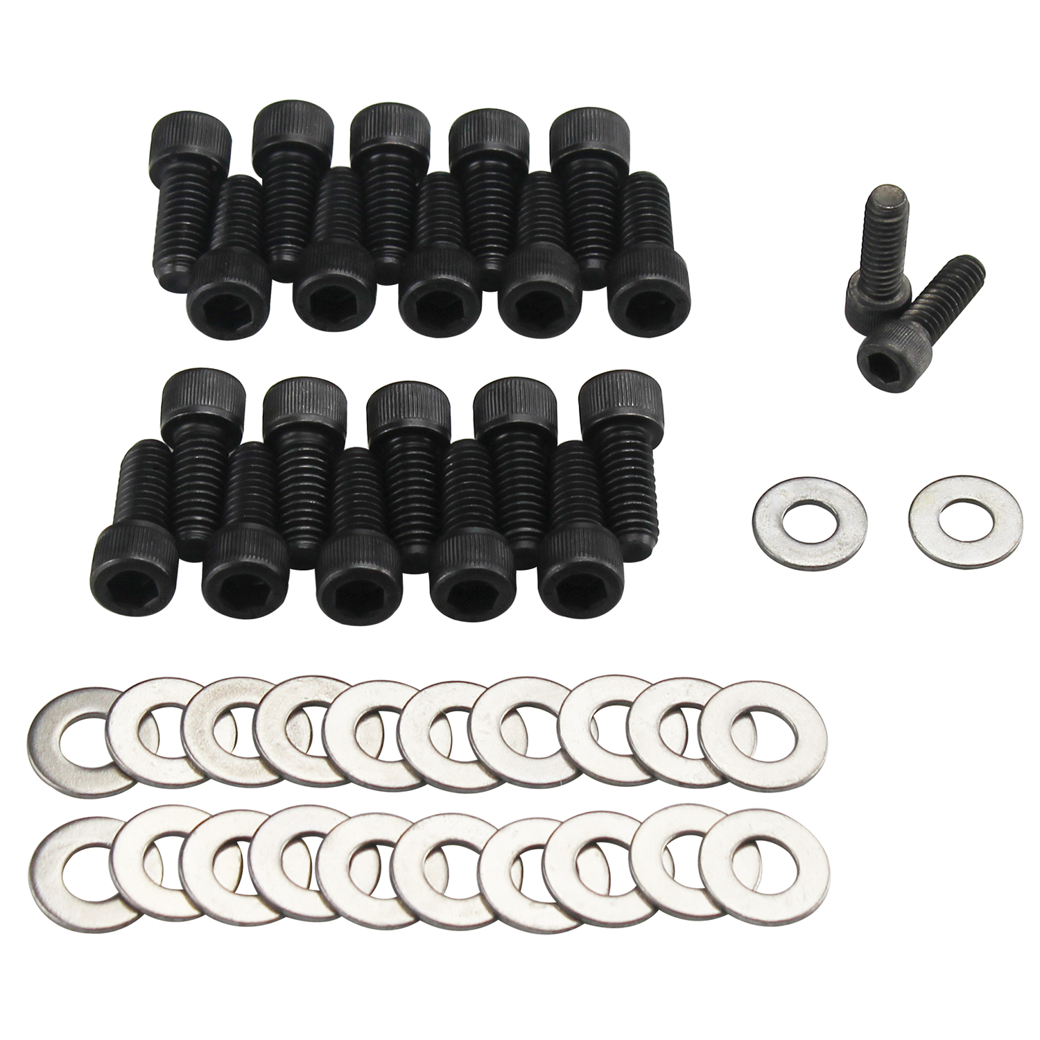 Part Type: Oil Pan Bolts Application: Chevrolet BB, Chrysler SB/BB, Ford FE 390-427, Pontiac V8 Fastener Style: Bolt Fastener Head Style: Allen Fastener Material: Steel Fastener Finish: Black Oxide Fastener Quantity: 22 Washers Included: Yes Manufacturer: Power Products Manufacturer's Part Number: 27-3207 Weight: Quantity: Sold as Set