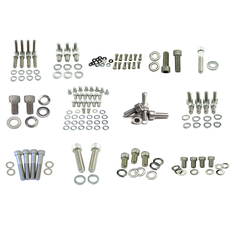 These quality kits include nearly every fastener for the accessories from manifold to oil pan. Includes bolts for: intake manifold, valve covers, thermostat housing, distributor hold down, coil bracket, oil pan, headers, front (timing) cover, water pump, fuel pump, crank pulley and water pump pulley. Note: Drive accessory studs not included.