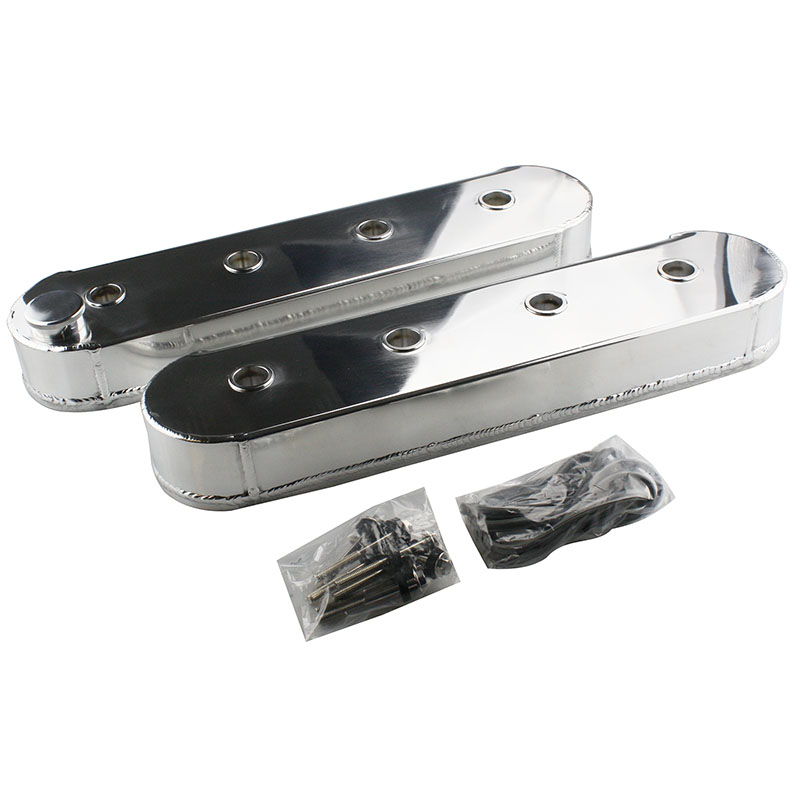 Power Products Fabricated Aluminum Chevrolet LS Valve Covers These valve covers provide a clean and unique aesthetic that only fabricated aluminum can provide. They provide a racing look, and their height allows for added clearance for high performance valvetrain set ups. Billet mounting surface. Includes gaskets and hardware. Sold in pairs. Note: No PCV provisions.