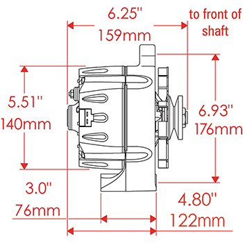 Party Type: Alternator Application: Ford Case Style: Powermaster Smooth Look One-Wire Hookup: Yes Amperage Output: 150 Amp Idle Amperage: 100 Amp Cruise Amperage: 125 Amp Top End Amperage: 150 Amp Voltage Compatibility: 12 Volt Pulley Included: Yes Pulley Style: 6-Groove Serpentine Fan Baffle: No Regulator Style: Internal Belt Included: No Brackets Included: No Mounting Points: 2 Alternator Finish: Natural Manufacturer: Powermaster Performance Manufacturer's Part Number: 8-47140 UPC: 692209007074 Weight: 12.5 lbs. Warranty: No warranty expressed or implied Quantity: Sold as Each