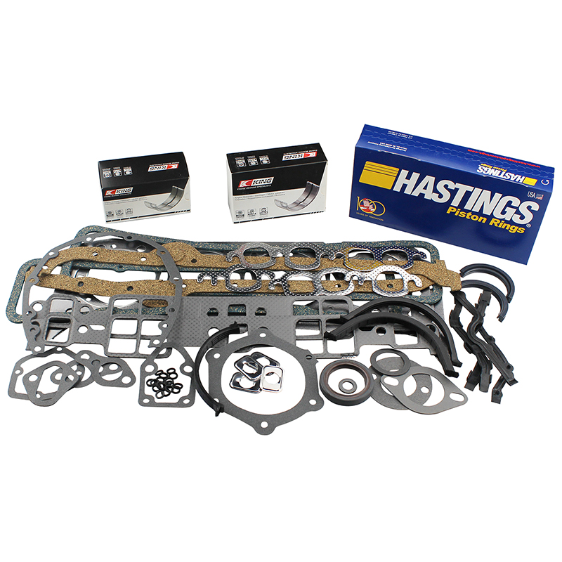 Ring, Bearing & Gasket Kit Perfect for freshening up that engine. Includes 5/64", 5/64", 3/16" rings. King Performance Rod & Main Bearings Hastings Rings Complete Gasket Kit