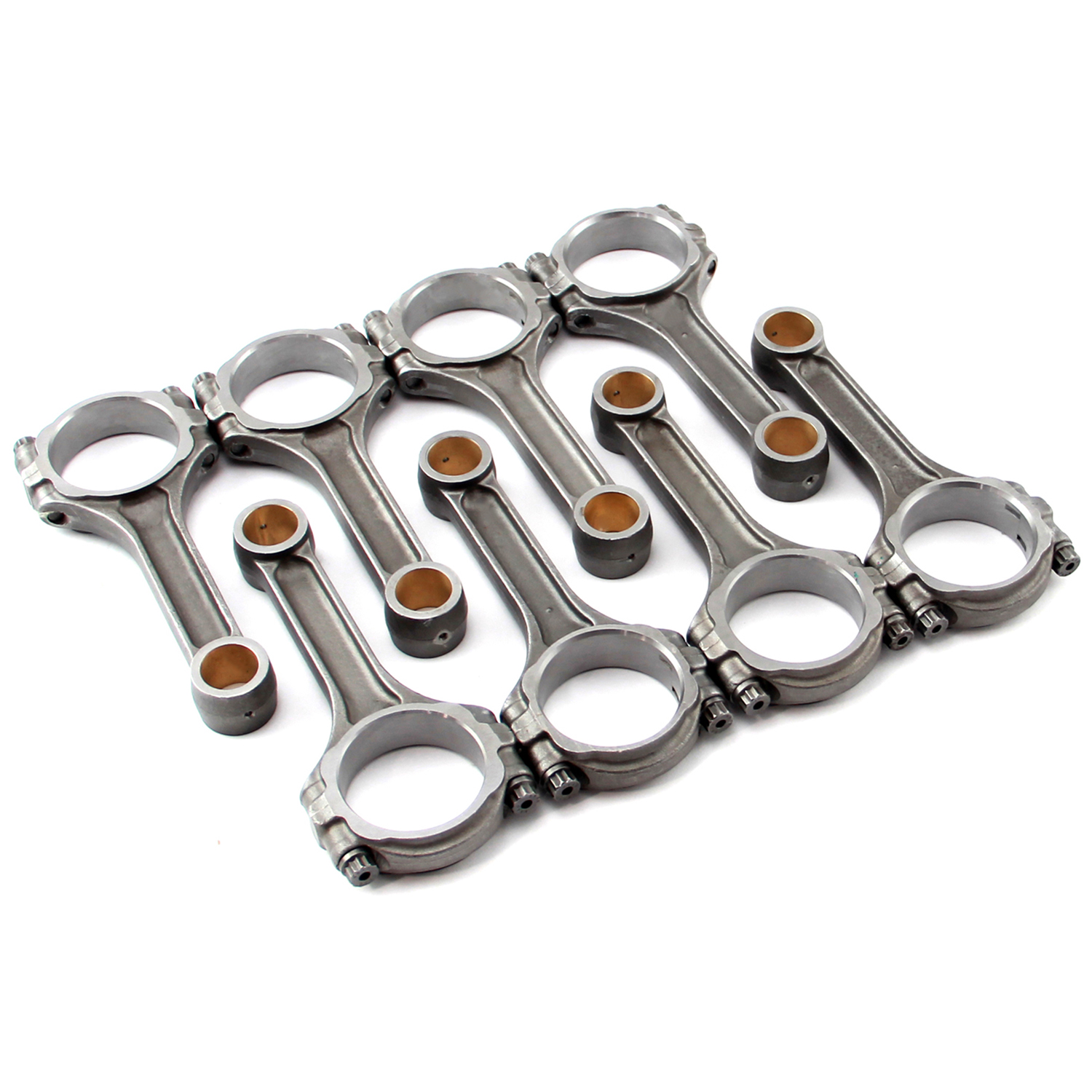 Speedmaster 5140 Forged I-Beam Connecting Rods Economically priced for stock rebuilds, strong for performance upgrades. Manufactured from high quality 5140 chromoly steel. These rods are x-rayed and ultrasonically tested with all surfaces shot peened and stress relieved. One-rib cap design for added strength and bearins support. Sets of 8.
