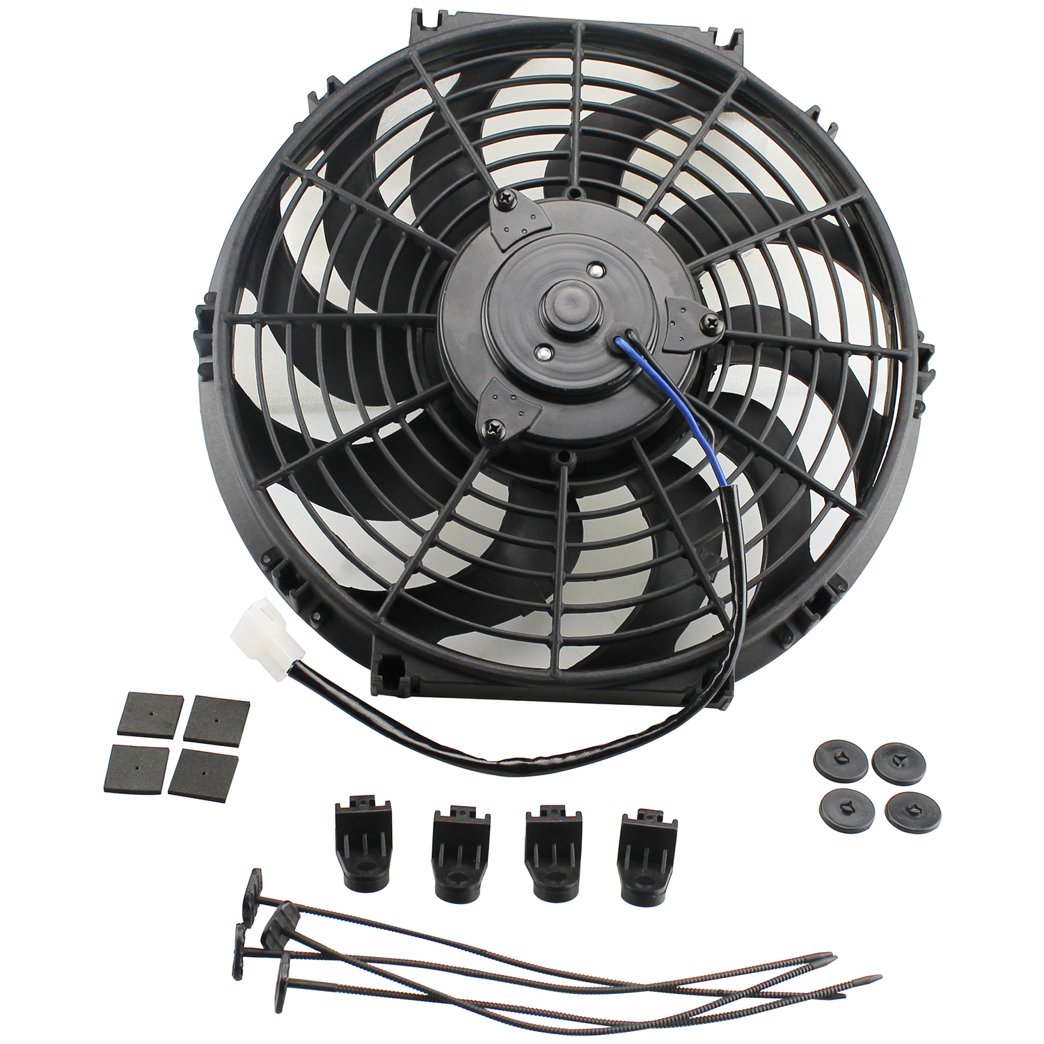 Part Type: Electric Fan Application: Universal- High Performance or Daily Drivers Maximum Fan CFM: 750 Fan Quantity: One Blade Style: "S" Blade Number of Blades: 10 Reversible: Yes Motor: Yes Fan Diameter: 12" Thickness: 2.375" Blade Material: Plastic Blade Color: Black Shroud Material: Plastic Shroud Color: Black Mounting Hardware Included: Yes Manufacturer: Top Street Performance Manufacturer's Part Number: HC6103 Weight: Warranty: https://www.topstreetperformance.com/warranty#warranty Quantity: Sold as Each