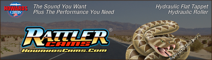 Howards Cams® After extensive research and development; Howards Cams® released a new cam line: the Rattler™ Cam. This strong street cam features the sound you want plus the performance you need. There is no mistaking the sound a Rattlesnake makes when you cross paths with one; the same can be said of the high performance engine in your street vehicle when equipped with one of our new Rattler™ Cams. Rattler™ Cams start with 100% American cam cores and are completely ground, finished, and verified in-house using the latest state-of-the-art CNC grinding and measuring equipment. Unlike our 'strong sounding' competitors, Howards Rattler Cams are designed with optimized valve timing to give you the menacing exhaust tone you desire without sacrificing the performance you deserve. Don't give up the performance for the sound - get both. Available in Hydraulic Flat Tappet and Hydraulic Roller configurations for most domestic V8 applications. Camshafts Chev SB 262-400 Chrysler SB LA Ford SB 221-302 (except HO) ON SALE NOW Chev SB 262-400 Chrysler SB LA Ford SB 221-302 (except HO) |